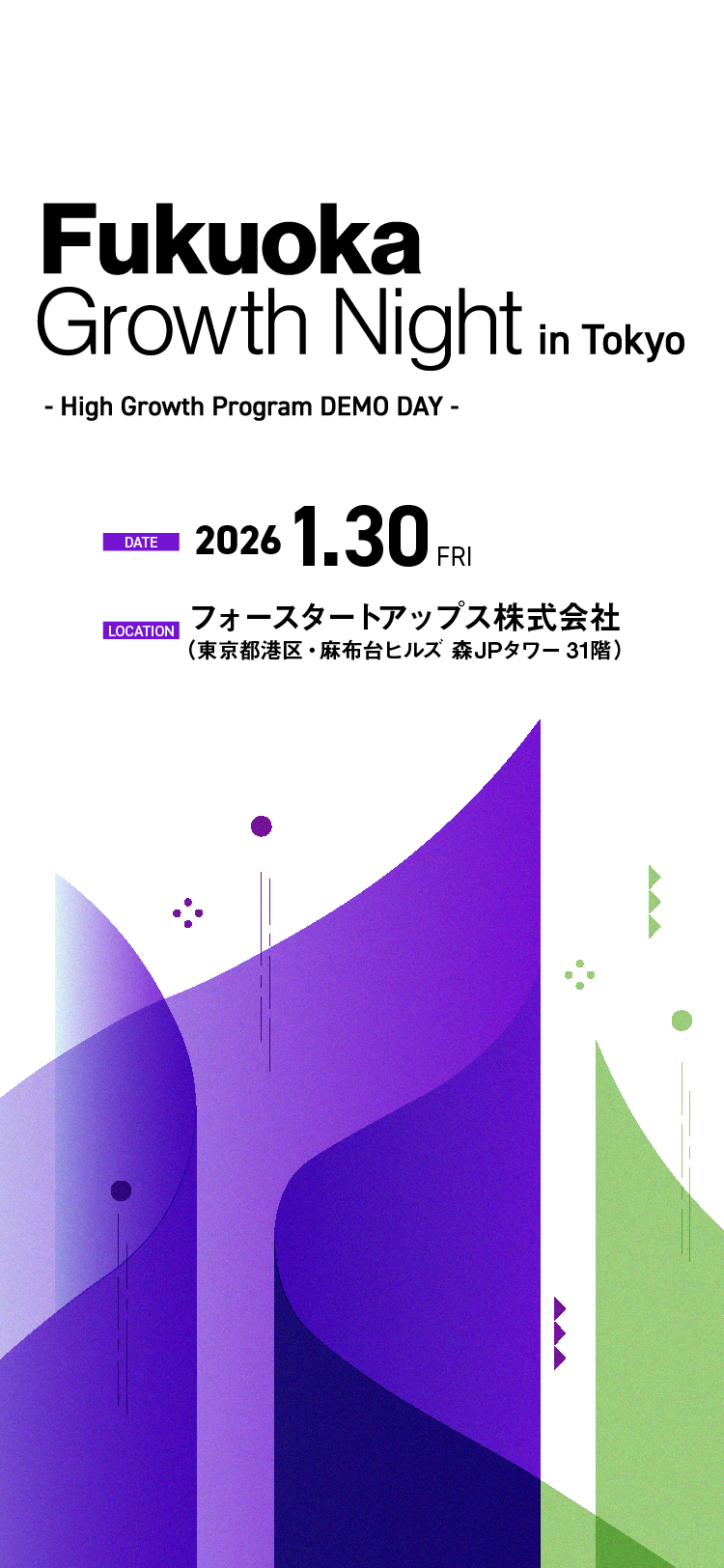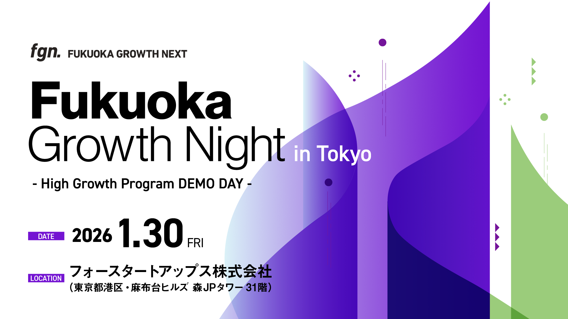 福岡市の官民共働型スタートアップ支援施設「Fukuoka Growth Next」は、成長支援プログラム「High Growth Program」の成果発表イベント 「Fukuoka Growth Night in Tokyo 〜High Growth Program DEMO DAY〜」 を開催いたします。